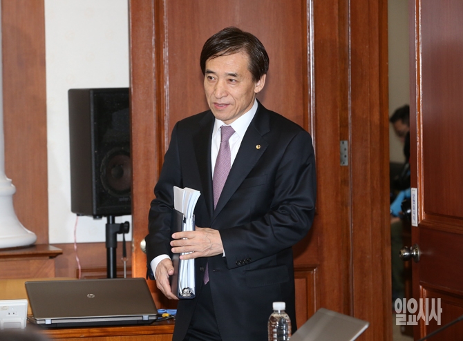 이주열 한국은행 총재가 12일 오전 서울 남대문로 한국은행에서 열린 금융통화위원회 전체회의에 참석하고 있다.