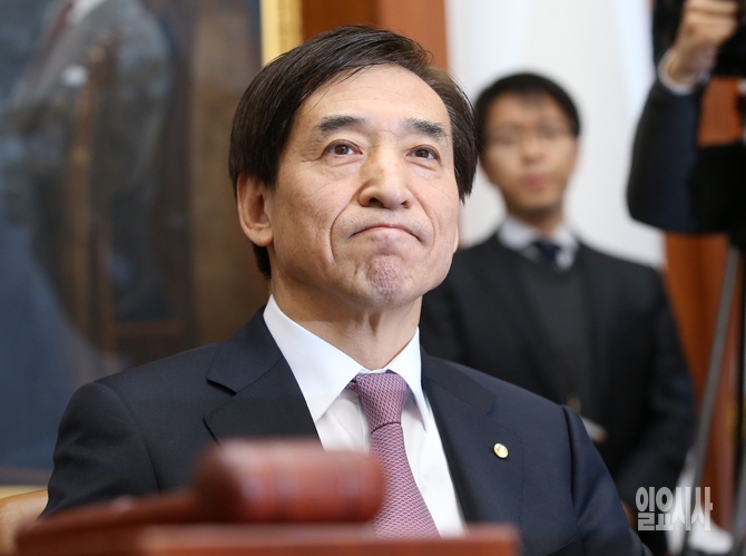 이주열 한국은행 총재가 12일 오전 서울 남대문로 한국은행에서 열린 금융통화위원회 전체회의에 참석해 생각에 잠겨있다.