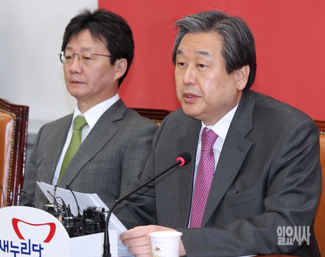 김무성 새누리당 대표(오른쪽)가 16일 오전 서울 여의도 국회에서 열린 최고위원회의에서 모두발언을 하고 있다.