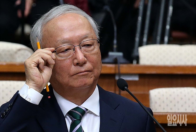 16일, 이병호 국정원장 후보자가 서울 여의도 국회에서 열린 국정원장 후보자에 대한 인사청문회 도중 이 후보자가 청문위원들의 질의에 잠시 고민에 빠져 있다.