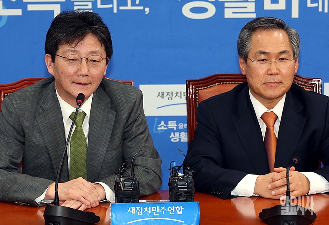 16일, 서울 여의도 국회에서 새누리당 유승민·새정치민주연합 우윤근 원내대표가 주례회동을 갖고 모두발언을 하고 있다.