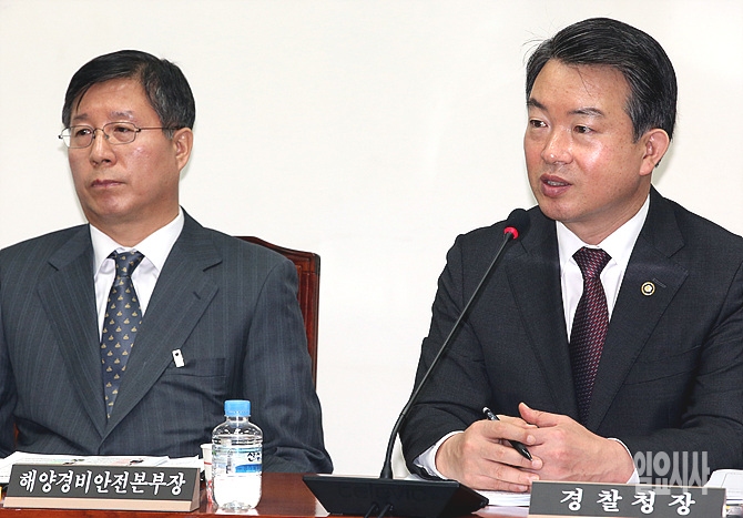17일, 서울 여의도 국회에서 열린 국민안전혁신 특별위원회 전체회의서 강신명 경찰청장이 출석해 의원들의 질의에 답변하고 있다.