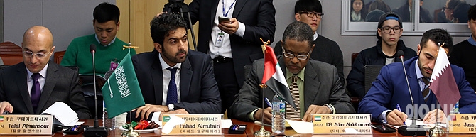 18일, 서울 여의도 국회 의원회관에서 '중동 4개국 순방의 성과와 의미' 토론회가 열리고 있는 가운데, 아랍예미리트 등 중동 대사 관계자들이 토론회에 참석해 있다.