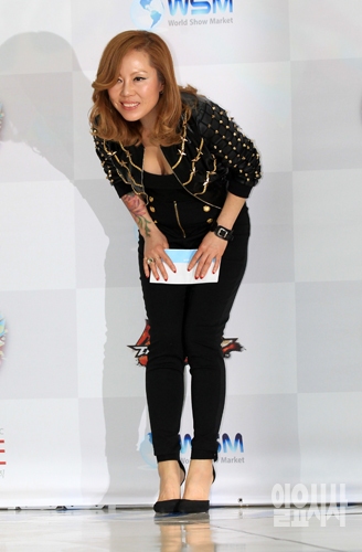 가수 철이와 미애의 미애가 19일 오후 서울 영등포 타임스퀘어에서 열린 '토토즐 슈퍼콘서트' 제작발표회에 참석해 포즈를 취하고 있다.