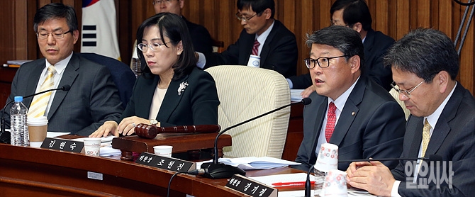 19일, 서울 여의도 국회에서 공무원연금개혁 국민대타협기구 5차회의가 열리고 있는 가운데, 조원진 공무원연금개혁 국민대타협기구 공동위원장이 모두발언을 하고 있다.
