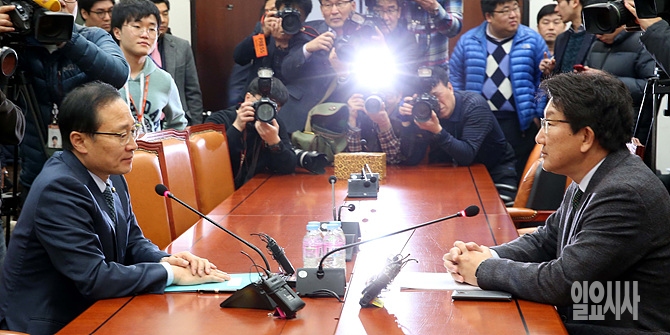 23일, 서울 여의도 국회에서 해외자원개발 국정조사특위 권성동-홍영표 여야 간사가 일촉즉발 회동을 갖고 있다.