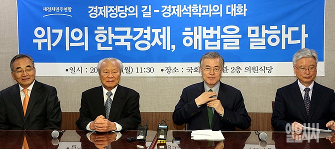 23일, 서울 여의도 국회의원회관 의원식당에서 '위기의 한국경제, 해법을 말하다'를 주제로 경제정당의 길-경제석학과의 간담회가 열리고 있다.