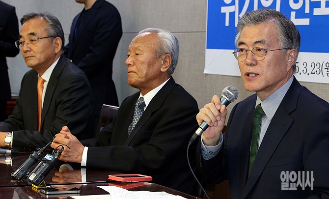 23일, 서울 여의도 국회의원회관 의원식당에서 '위기의 한국경제, 해법을 말하다'를 주제로 경제정당의 길-경제석학과의 간담회가 열린 가운데, 새정치민주연합 문재인 대표가 모두발언하고 있다.