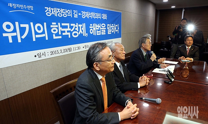 23일, 서울 여의도 국회의원회관 의원식당에서 '위기의 한국경제, 해법을 말하다'를 주제로 경제정당의 길-경제석학과의 간담회가 열린 가운데, 새정치민주연합 문재인 대표가 발언하고 있다.