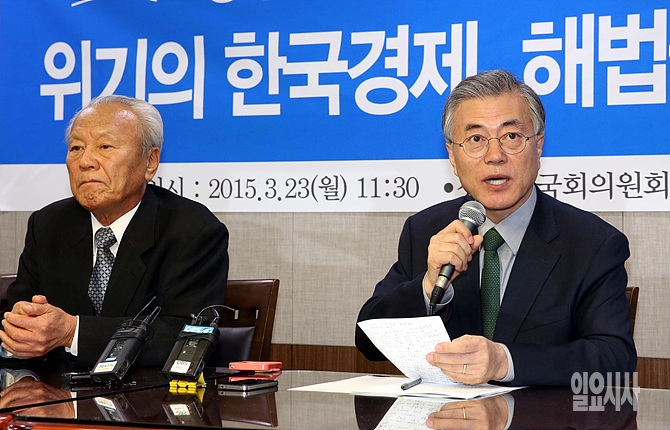 23일, 서울 여의도 국회의원회관 의원식당에서 '위기의 한국경제, 해법을 말하다'를 주제로 경제정당의 길-경제석학과의 간담회가 열린 가운데, 새정치민주연합 문재인 대표가 발언하고 있다.