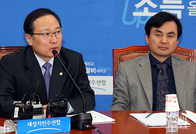 24일, 서울 여의도 국회에서 새정치민주연합 원내대책회의가 열린 가운데, 홍영표 자원외교 국조특위 야당 간사가 발언하고 있다.