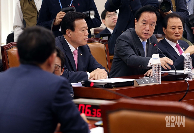 24일, 서울 여의도 국회 법제사법위원회 회의실서 열린 이석수 특별감찰관 후보자에 대한 인사청문회에서 새누리당 이병석 의원이 이 후보자를 향해 질의하고 있다.