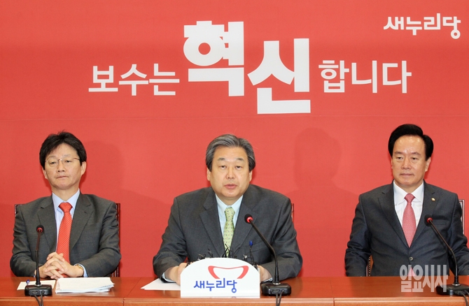 새누리당 김무성 대표(가운데)가 25일 오전 서울 여의도 국회에서 열린 최고중진연석회의에서 모두발언을 하고 있다.