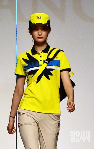 2015광주하계유니버시아드 조직위원회가 25일, 서울 신라호텔 다이너스티홀에서 ‘광주U대회 D-100일’을 기념해 유니폼 패션쇼를 개최한 가운데, 모델들이 워킹을 하고 있다.