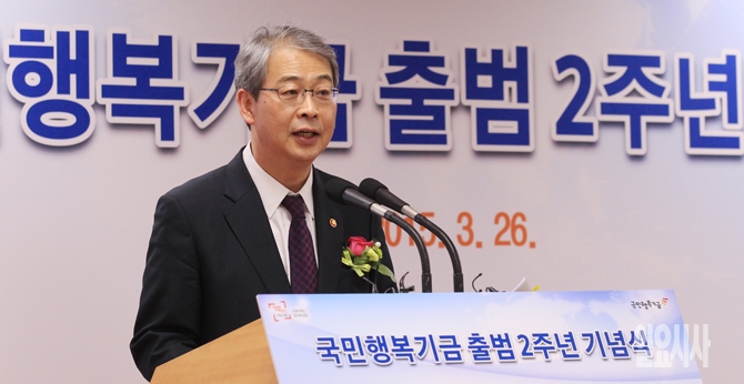 임종룡 금융위원장이 26일 오전 서울 강남구 역삼동 한국자산관리공사 서울본부에서 열린 '국민행복기금 출범 2주년 기념행사'에서 축사를 하고 있다.