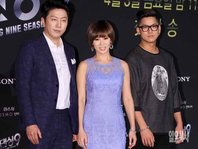 김수로, 박지은, 이용우(왼쪽부터)로 구성된 '블루아이'팀이 26일 오후 서울 마포구 상암동 E&M센터에서 열린 Mnet <댄싱9 시즌3 올스타전> 제작발표회에서 포즈를 취하고 있다.