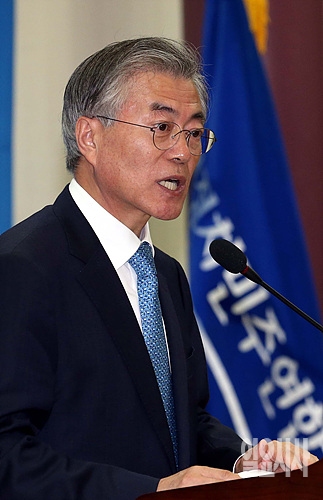 26일, 서울 여의도 국회 의원회관에서 열린 새정치민주연합 1주년 기념식에서 문재인 대표가 축사를 하고 있다.