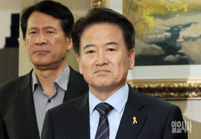 국민모임 정동영 전 의원이 30일 오전 서울 여의도 자신의 사무실에서 기자회견을 열고 4ㆍ29 재보선 출마선언을 하기 직전 입을 굳게 다물고 있다.