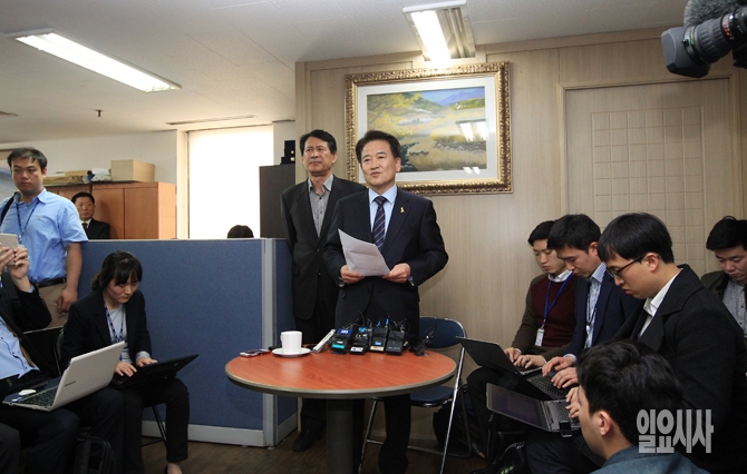 국민모임 정동영 전 의원이 30일 오전 서울 여의도 자신의 사무실에서 기자회견을 열고 4ㆍ29 재보선 출마선언을 하고 있다.