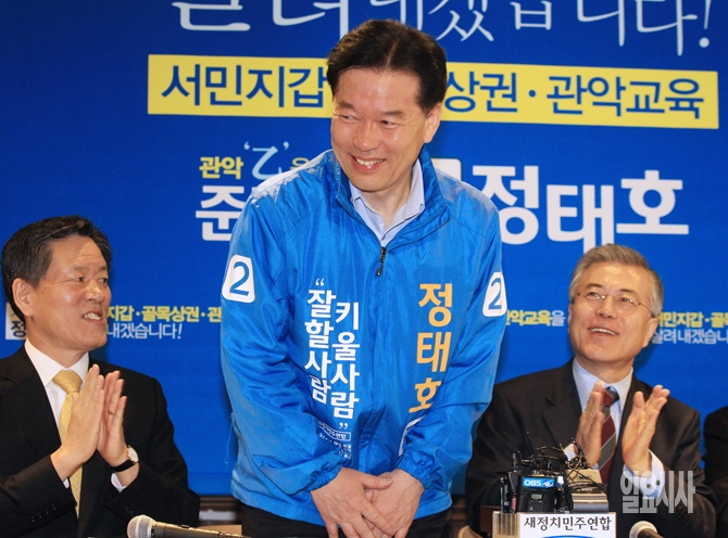 4·29재보궐선거 서울 관악을에 출마한 새정치민주연합 정태호 국회의원 예비후보가 30일 오전 서울 관악구 난곡로 난향꿈둥지에서 열린 현장최고위원회의에 참석해 인사하고 있다.