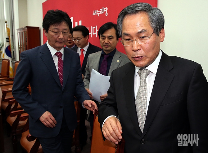 2일, 서울 여의도 국회서 열린 여야 주례회동 직후 새정치민주연합 우윤근 원내대표와 유승민 원내대표가 회의장을 빠져나가고 있다.