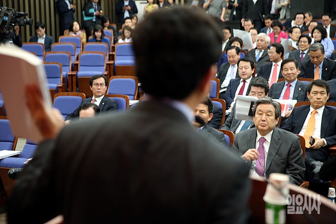 2일, 서울 여의도 국회에서 열린 새누리당 정책 의원총회에서 의원들이 김문수 보수혁신특별위원장의 발언을 경청하고 있다.