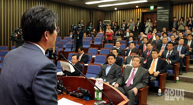 2일, 서울 여의도 국회에서 열린 새누리당 정책 의원총회에서 유승민 원내대표가 모두발언하고 있다.