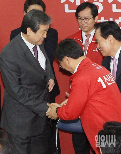 [포토] 악수하는 김무성-신상진