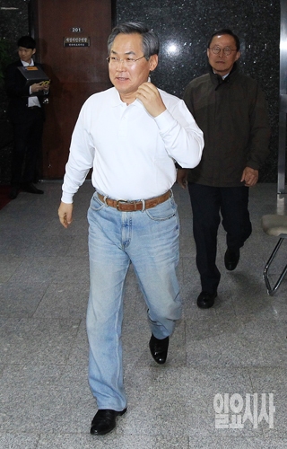 [포토] 청바지 차림으로 의원총회 참석하는 우윤근