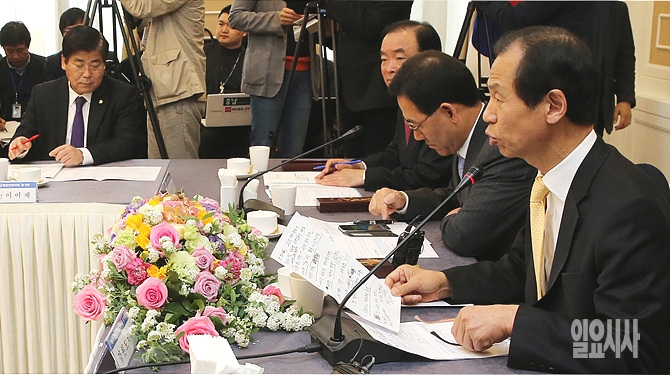 6일, 서울 여의도 국회 귀빈식당에서 열린 비 수도권 시도지사 협의회 도중 최문순 강원도지사가 발언을 하고 있다.
