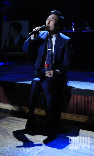 가수 이문세가 6일 오후 서울 강남구 삼성동 백암아트홀에서 열린 자신의 정규 15집 'New Direction' 음악감상회에서 열창하고 있다.