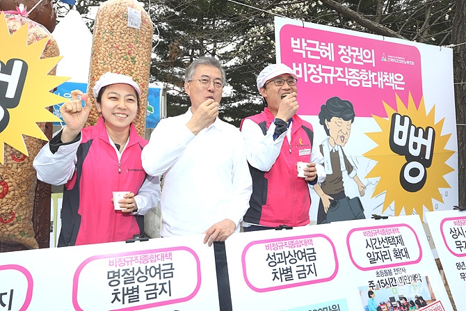 6일, 새정치민주연합 문재인 대표가 국회서 열린 '2015 다함께 정책엑스포'에서 박근혜정부의 비정규직종합대책과 관련해 비판하고 있다.