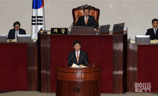 새누리당 유승민 원내대표가 8일 오전 국회 본회의에서 교섭단체 대표연설을 하고 있다.