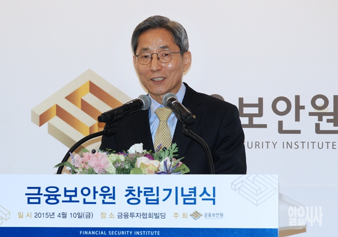 윤종규 KB금융그룹 회장이 10일 오전 서울 여의도 금융투자협회에서 열린 금융보안원 창립기념식에서 축사를 하고 있다.