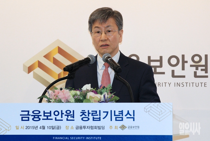 김영린 금융보안원 원장이 10일 오전 서울 여의도 금융투자협회에서 열린 금융보안원 창립기념식에서 인사말을 하고 있다.