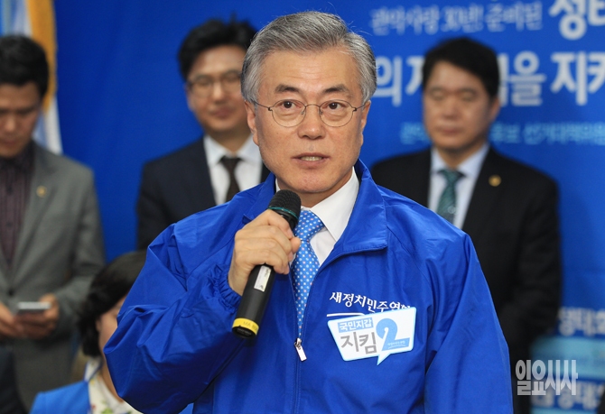 새정치민주연합 문재인 대표가 10일 오후 4·29 재보궐 선거 관악을에 출마하는 정태호 후보 선거사무소에서 열린 선거대책위 출범식에서 인사말을 하고 있다.