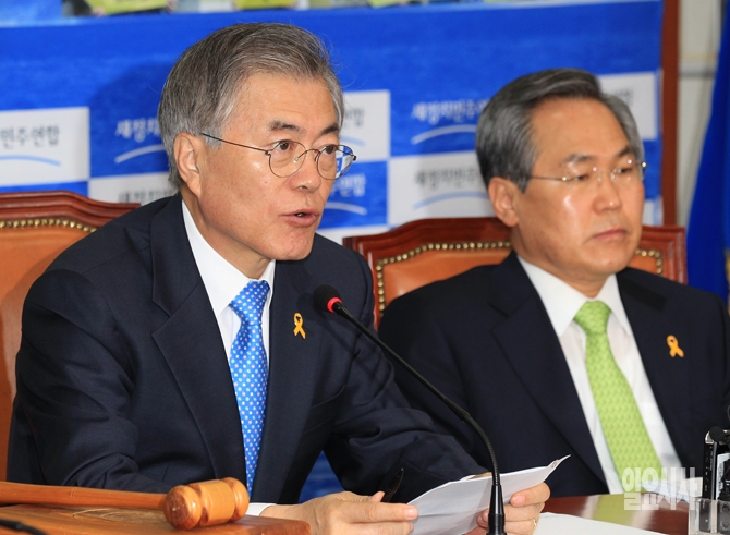 새정치민주연합 문재인 대표가 13일 오전 서울 여의도 국회에서 열린 당 최고위원회의에서 모두발언을 하고 있다.