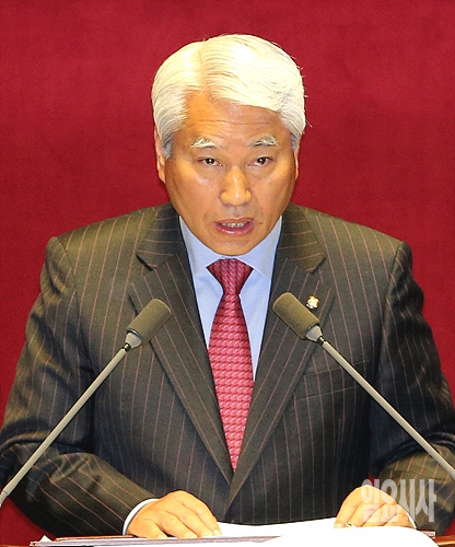 14일, 서울 여의도 국회 본회의장에서 열린 대정부질문 둘째 날, 외교·안보분야 질의에서 새정치민주연합 백군기 의원이 질의를 하고 있다.