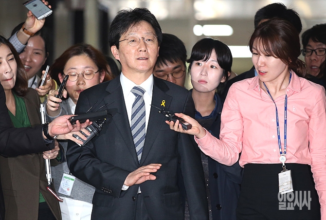 14일, 서울 여의도 국회서 새누리당 비공개 의원총회 직후 유승민 원내대표가 취재진의 질문세례를 받고 있다.
