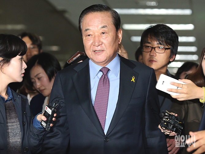 14일, 서울 여의도 국회서 새누리당 비공개 의원총회 직후 서청원 최고위원이 취재진의 질문을 받고 있다.
