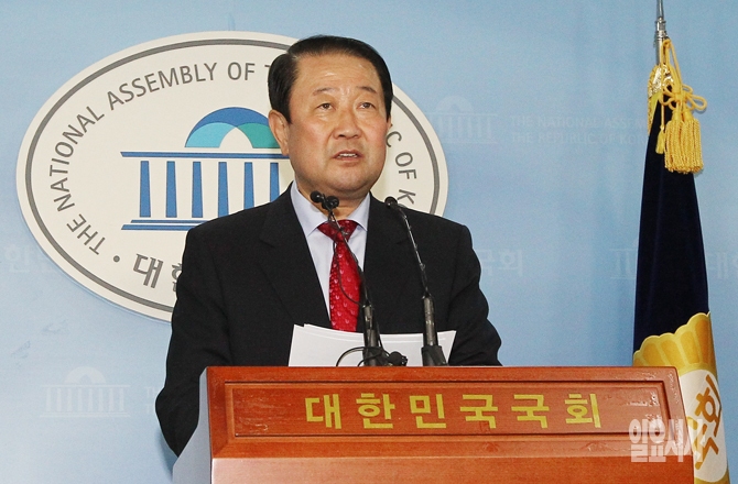 박주선 새정치민주연합 의원이 22일 오후 서울 여의도 국회 정론관 기자회견장에서 탈당 기자회견을 갖고 있다.