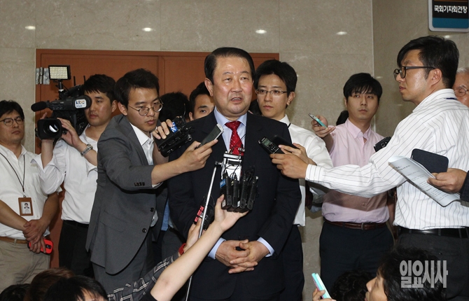 박주선 의원이 22일 오후 서울 여의도 국회 정론관 기자회견장에서 새정치민주연합 탈당 기자회견을 마치고 기자들의 질문에 답변하고 있다.