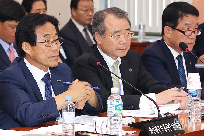 22일, 서울 여의도 국회 교육문화체육관광위원회 회의실에서 열린 국민체육진흥공단 등에 대한 국정감사에서 이창섭 국민체육진흥공단 이사장이 의원들의 질의에 귀 기울이고 있다.