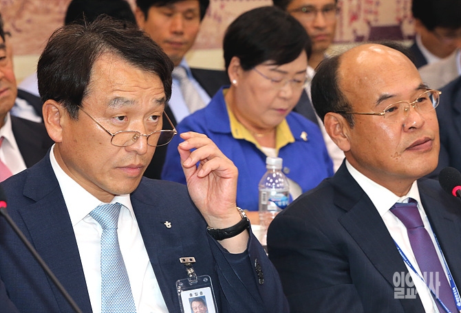 22일, 서울 여의도 국회 교육문화체육관광위원회 회의실에서 열린 국민체육진흥공단 등에 대한 국정감사에서 정창수 한국관광공사 사장이 의원들의 질의에 귀 기울이고 있다.