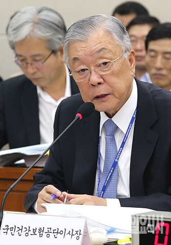 22일, 서울 여의도 국회 보건복지위원회 회의실에서 열린 국민건강보험공단 등에 대한 국정감사에서 성상철 국민건강보험공단 이사장이 의원들의 질의에 답변하고 있다.