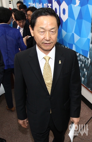 김상곤 새정치민주연합 혁신위원장이 23일 오후 서울 여의도 국회에서 혁신위원회 기자회견을 마친 후 기자회견장을 나서고 있다.