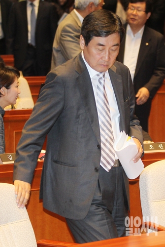 이종걸 새정치민주연합 원내대표가 23일 오전 서울 여의도 국회에서 열린 새정치민주연합 긴급의원총회에서 자리에 착석하고 있다.