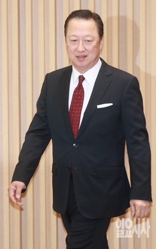 박용만 두산그룹 회장이 26일 오전 서울 동대문 두산타워에서 열린 동대문 미래창조재단 출범식에 참석하기 위해 입장하고 있다.