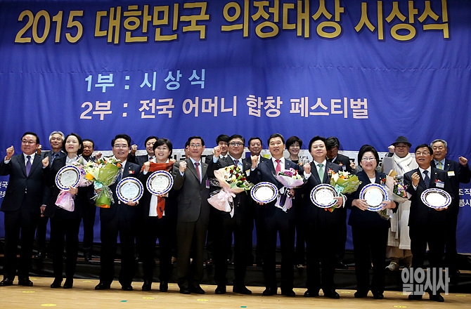 25일, 서울 여의도 국회 의원회관 대회의실서 열린 '2015 대한민국 의정대상 시상식'에서 새누리당 이종진, 새정치민주연합 서영교·백재현 의원 등 수상자들이 기념촬영을 갖고 있다.