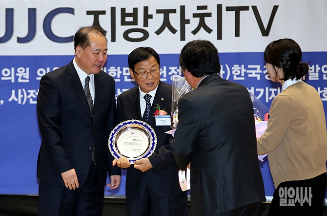 25일, 서울 여의도 국회 의원회관 대회의실서 열린 '2015 대한민국 의정대상 시상식'에서 새누리당 이종진의원이 '헌정대상'을 수상하고 있다.